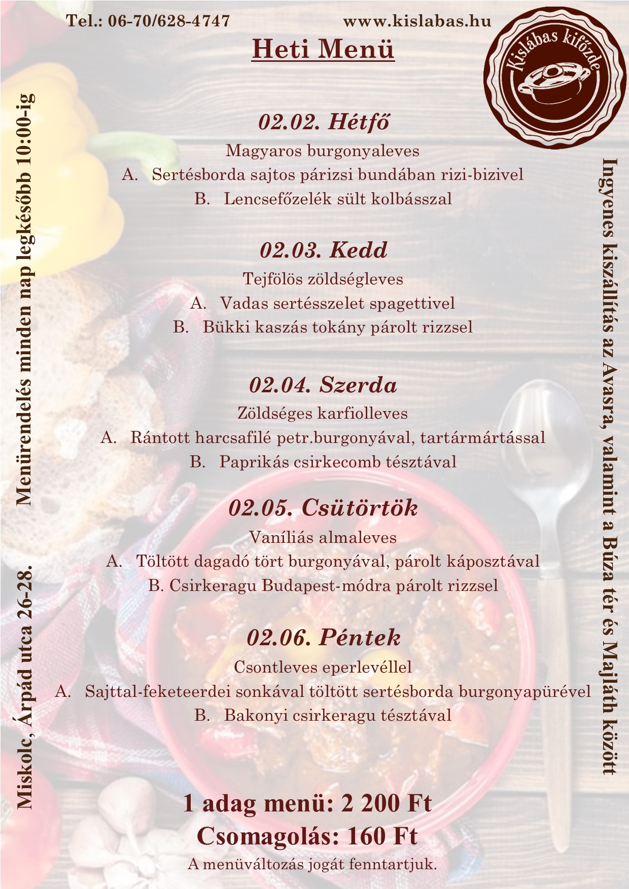 Heti menü: 02.02.-02.06.